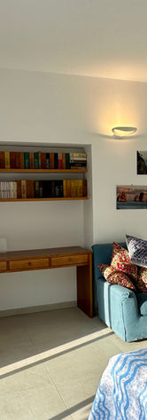 Alle pareti gli scatti fatti dal terrazzo all'albeggiare in una, i Faraglioni nell'altra.